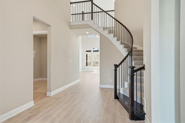 From GFO Home's grand Presidential Series, this stunning 3,408 sf Two-Story new construction home is our striking Harrison Floor Plan offering 5 Bedrooms, 4 Bathrooms, and a spacious 2-Car Garage on a beautiful corner lot in the amenity-rich master-planned community of Walsh. This home also includes highlights like a Flex Bonus Room on the main floor, a Guest Suite with full ensuite Bathroom, an Open Concept Family Room with double vaulted high ceilings, and a Gourmet Chef’s Kitchen featuring a large Center Island, Walk-in Pantry, and attached Breakfast Room. Enjoy a spacious Extended Covered Patio leading out to the Private Backyard, as well as a luxurious Primary Suite and Spa-Inspired Primary Bathroom with a Free-Standing Tub, and Oversized Walk-In Closet. Upstairs you’ll find the Game room for endless fun, as well as 3 additional Bedrooms and 2 more full Bathrooms. Experience high-end living at its finest with GFO Home's Harrison floor plan in the beautiful Walsh Community in Fort Worth, TX.